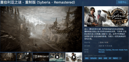 經典解謎冒險游戲《塞伯利亞之謎 重制版》今日發售!Steam國區原價109元,11月21日前首發9折,優惠價為98.1元。本作是該系列首部游戲的完全重制版,重新探索貝努瓦·索卡爾的