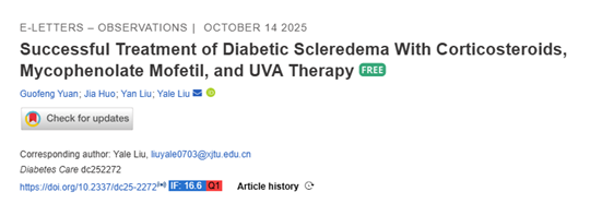 近日,西安交通大學第二附屬醫院皮膚科劉亞樂副研究員聯合霍佳教授和劉艷教授成功治療一例罕見糖尿病性硬腫癥。相關病例報告已發表于美國糖尿病協會官方期刊《DiabetesCare》,不僅展示出聯合療法在該病治療中的潛