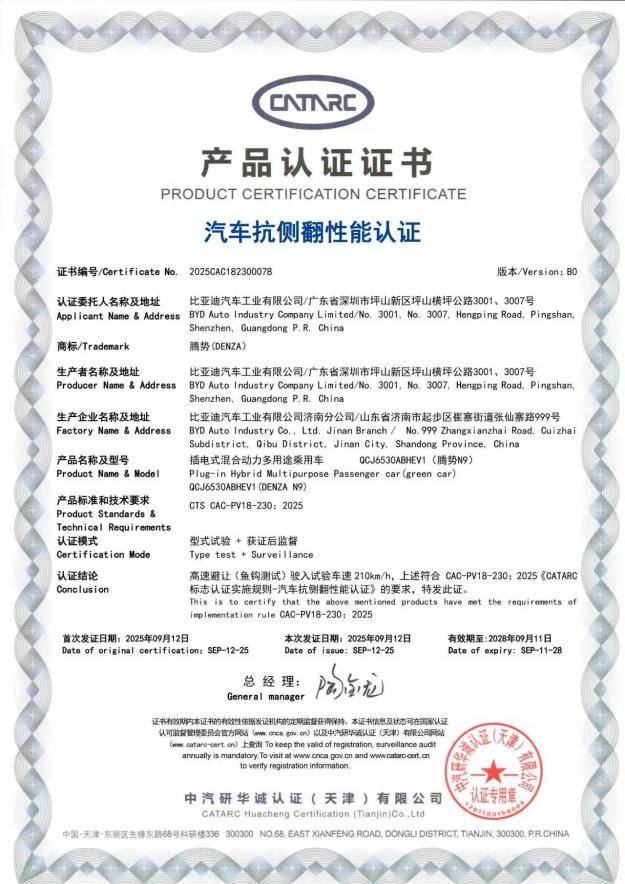 什么才是真正的豪華?2026款騰勢N9給出了答案:安全,才是最大的豪華。在模擬高速緊急避讓的魚鉤測試中,2026款騰勢N9以210km/h通過不側翻,刷新世界紀錄,并通過中汽研權威認證,以極致安全鑄就新標桿。這已經是騰勢N9第三次打破