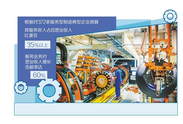 江蘇三元輪胎有限公司智能化生產(chǎn)車間里,工人在生產(chǎn)線上趕制出口訂單。徐江海攝(中經(jīng)視覺)  從“賣產(chǎn)品”轉(zhuǎn)變?yōu)椤百u服務(wù)+產(chǎn)品”,服務(wù)型制造正成為中國制造轉(zhuǎn)型升級的重要抓手。近期,工業(yè)和信息化部等7部門聯(lián)合印