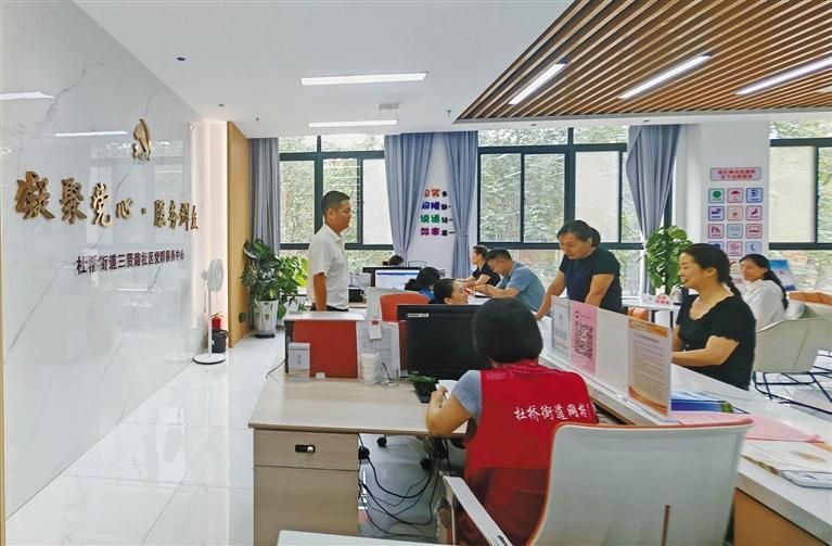 渭南市臨渭區(qū)杜橋街道三賢路社區(qū)黨群服務中心工作人員為群眾辦理相關業(yè)務(資料照片)。 本報記者 鄭斐攝