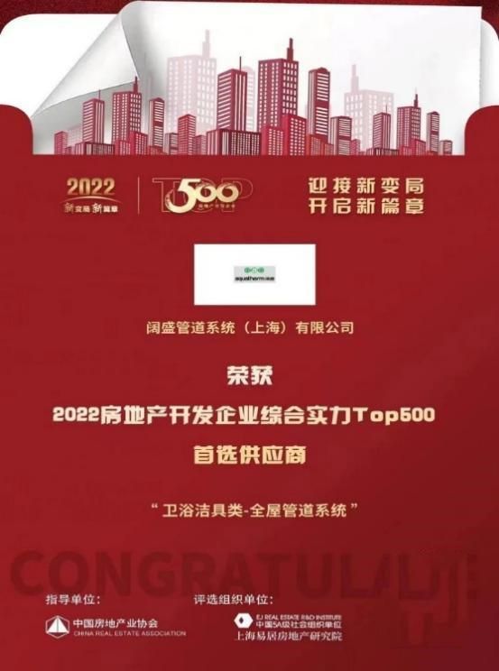 憑借扎實的原料根基與嚴格的品控實力,德國闊盛已成為眾多知名開發商的優選伙伴,多次入選“房建供應鏈綜合實力TOP500首選供應商”,位列全屋管道系統類別前列。
