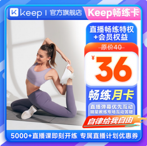 想趁假期在家運動的消費者可以選擇來京東辦理Keep暢練月卡,到手價36元。