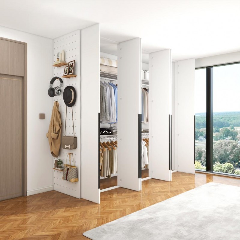 美達斯深知,一個完整的衣柜需要周全的考量。展廳內,專門為不同場景的衣柜配置了全系列防塵門系統,包括: