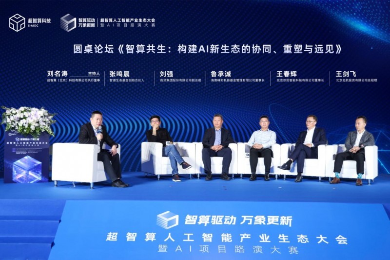 圓桌論壇環節,超智算科技執行董事劉名濤主持開展了以《智算共生:構建AI新生態的協同、重塑與遠見》的討論,與北京北航投資有限公司總經理王劍飛、商湯集團股份有限公司副總裁劉強、峰和資本董事長魯承誠、智譜生態基金創始合伙人張鳴晨、北京識因智能科技有限公司董事長王春輝圍繞“算力如何驅動產業創新”“AI技術商業化路徑”及“生態構建的關鍵要素”等核心議題展開深度對話,觀點交鋒。