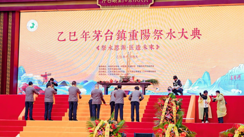 上午十時二十九分,祭水大典核心儀式將活動推向高潮。從“鳴鼓啟祭·龍禧赤河”的恢宏開場,到“恭迎源水·獻(xiàn)唱童謠”的純凈質(zhì)樸,再到“周禮祭水·祝文追遠(yuǎn)”的莊嚴(yán)肅穆,每一個儀程都彰顯著醬酒人對傳統(tǒng)與自然的敬畏。