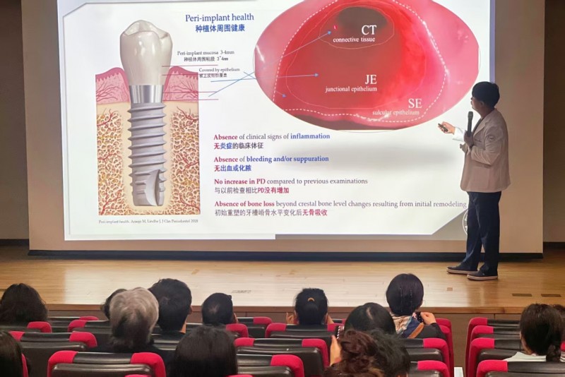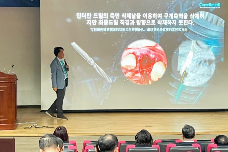 柯威爾創始人、韓國釜山國立大學牙醫學院臨床教授、REID(口腔種植研發培訓中心)所長金洙弘博士,則聚焦《種植體并發癥預防及處理方案》,憑借豐富臨床經驗,從多維度直觀展示了種植體周圍炎、種植體松動、脫落等常見并發癥的誘因與應對策略,詳細講解了如何通過前期口腔檢查、影像學評估、全身健康狀況排查,精準掌握患者情況,降低并發癥發生風險。