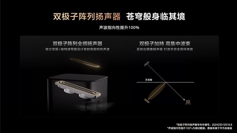在水平方向,多聲道音箱內(nèi)采用的星環(huán)散射體專利設(shè)計(jì),讓聲音形成了向外擴(kuò)散的均勻聲場(chǎng),從而擴(kuò)大正面聽(tīng)音的“甜點(diǎn)區(qū)”,無(wú)論用戶坐在哪,都是聽(tīng)音C位;在垂直方向,多聲道音箱與環(huán)繞音箱則應(yīng)用了雙極子陣列揚(yáng)聲器專利技術(shù),仿佛在天花板安裝了天空音音箱,大大提升聲波指向性,增強(qiáng)了聲場(chǎng)的環(huán)繞感。華為悅彰家庭影院在水平與垂直方向的聲音均實(shí)現(xiàn)精準(zhǔn)定位,為用戶帶來(lái)360°環(huán)繞式影院聲場(chǎng)體驗(yàn)。
