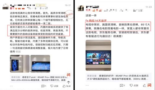 一位購買85寸機(jī)型的用戶感嘆:“音效方面令人印象深刻,低音渾厚,高音清亮,享受影院級的聽覺盛宴。”另一位用戶同樣表示:“音響效果很棒,像在電影院看電影一樣”。真實(shí)用戶的反饋,印證了卓越音質(zhì)在整體影音體驗(yàn)中不可或缺的價(jià)值。