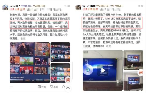 自上市以來,創(chuàng)維6系產(chǎn)品在全渠道表現(xiàn)亮眼:京東與天貓等電商平臺累計(jì)用戶評價(jià)已突破一萬條,其中京東平臺好評率持續(xù)保持在100%的高位。從這些真實(shí)反饋中可清晰看到,“畫質(zhì)清晰”“色彩飽滿細(xì)膩”“畫質(zhì)銳利”“不反光”“音效特別震撼”“聲場立體又飽滿,看大片像在電影院一樣”“界面很人性化”“語音控制超方便”等關(guān)鍵詞,成為用戶集中認(rèn)可的亮點(diǎn)。同時(shí),在電商平臺上,用戶真實(shí)評價(jià),直接回應(yīng)著“創(chuàng)維電視怎么樣“、“創(chuàng)維電視好不好”等疑問,為潛在用戶提供最直觀的參考依據(jù)。