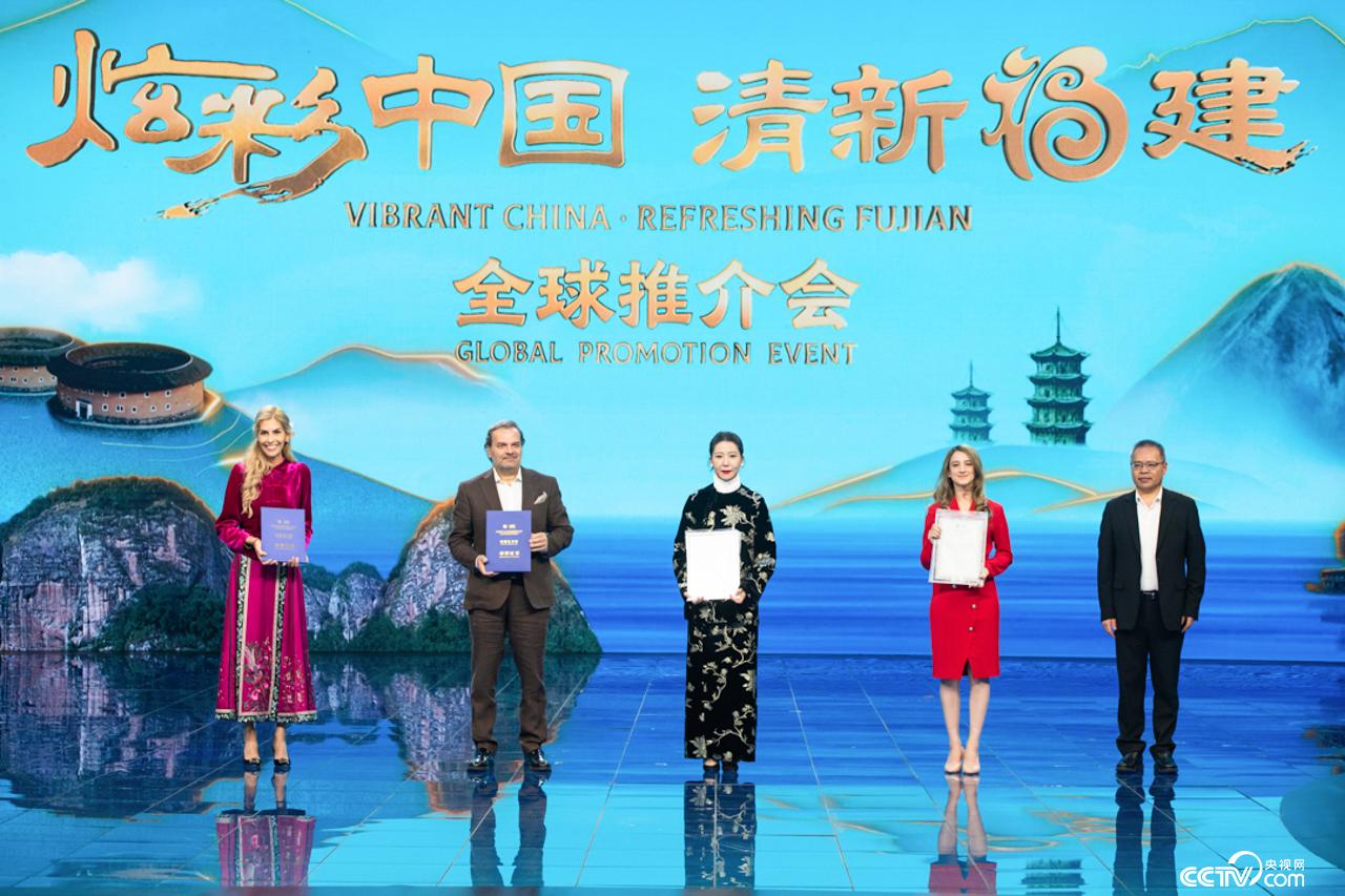 現(xiàn)場為全球知名藝術(shù)家代表——美國歌劇演唱家卡拉·卡納萊斯,意大利視覺藝術(shù)家、導(dǎo)演恩里克·卡斯蒂列尼,“清新福建”全球文旅推介官代表——環(huán)球旅行自媒體博主楊寶迪和自媒體博主于中美頒發(fā)證書,共同開啟一場“清新福建”的國際文旅交流新航程。